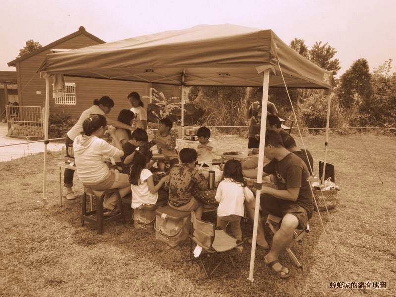 ▼早餐後慢慢撤收裝備,因為陣陣強風,5個家庭帶著自己的泡麵全擠到最後一個客廳帳下~
